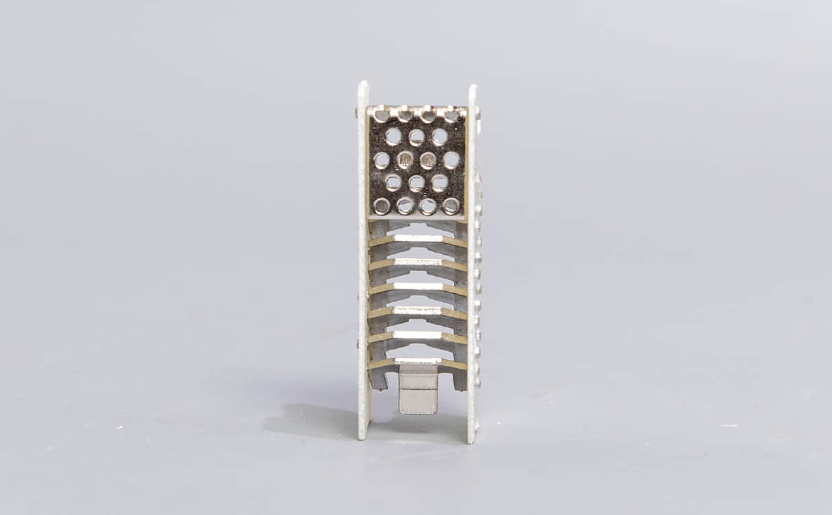五金沖壓零部件通過放料帶、切邊,沖孔等多道工序的折彎,利用絲攻機螺牙、鉚合,落料等完成錯綜復雜的沖壓加工工藝。我司五金沖床設備種類齊全,并以模具為核心,通過改變成型鑲塊得到各式各種的五金零部件,集切邊、沖孔、成型、翻邊、攻絲、鉚合、落料于一體。通過中高速的設備達到零部件高精度和高穩定性,保證其壽命。我司接受改模,改型,制模等業務。并廣泛應用于電氣、醫療,汽配,生活等與人們日常生活息息相關的領域。